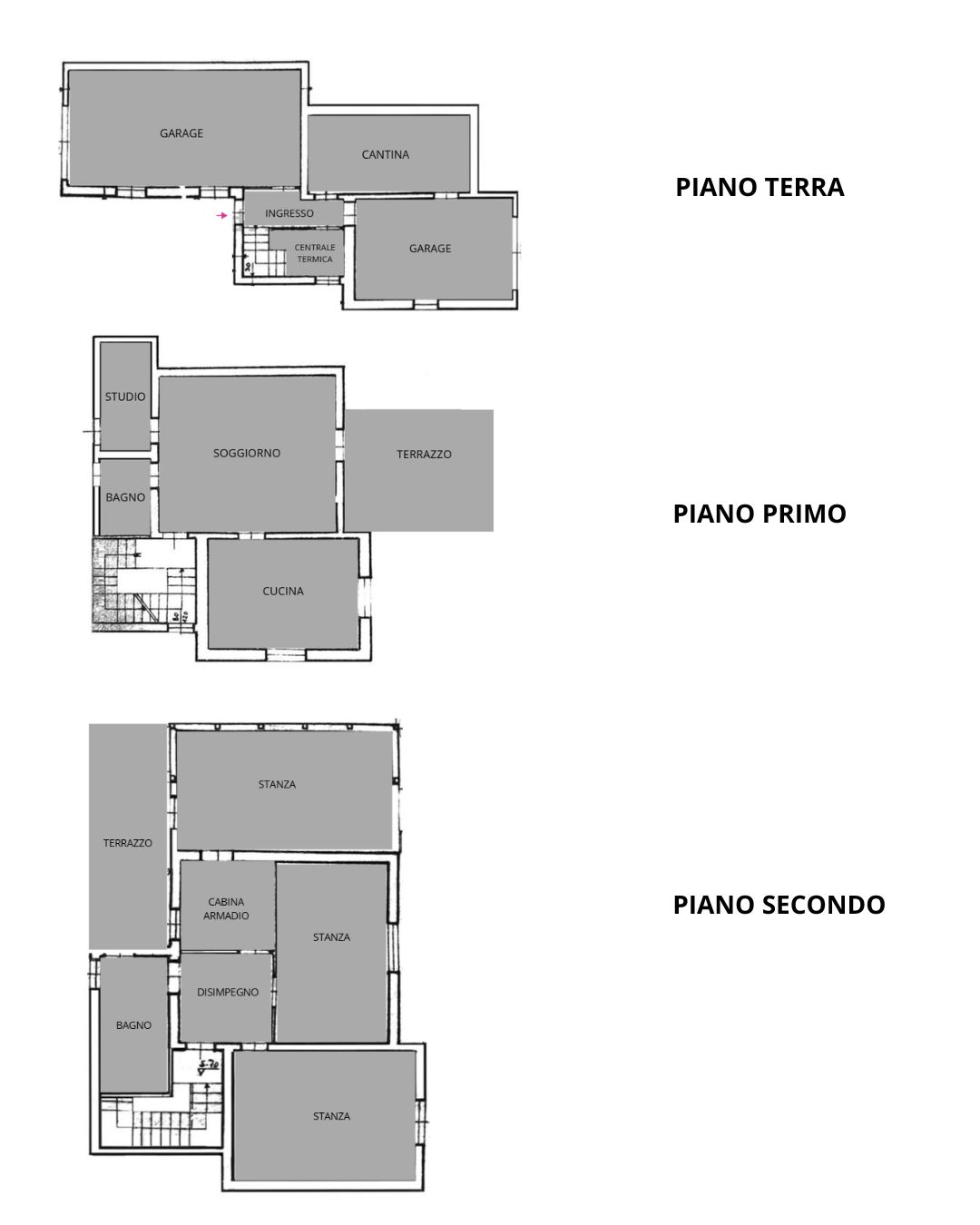 L'immobile dagli spazi generosi presenta al piano primo un arioso soggiorno con accesso alla terrazza panoramica con vista sulla città, una luminosa cucina abitabile, uno studio, un comodo ripostiglio e un primo bagno finestrato con vasca, al piano superiore troviamo la zona notte composta da tre stanze matrimoniali, di cui una completa di cabina armadio e accesso esterno ed un secondo bagno finestrato con doccia. Al piano terra completano la proprietà due garage di cui uno dotato di wc e ampia cantina.